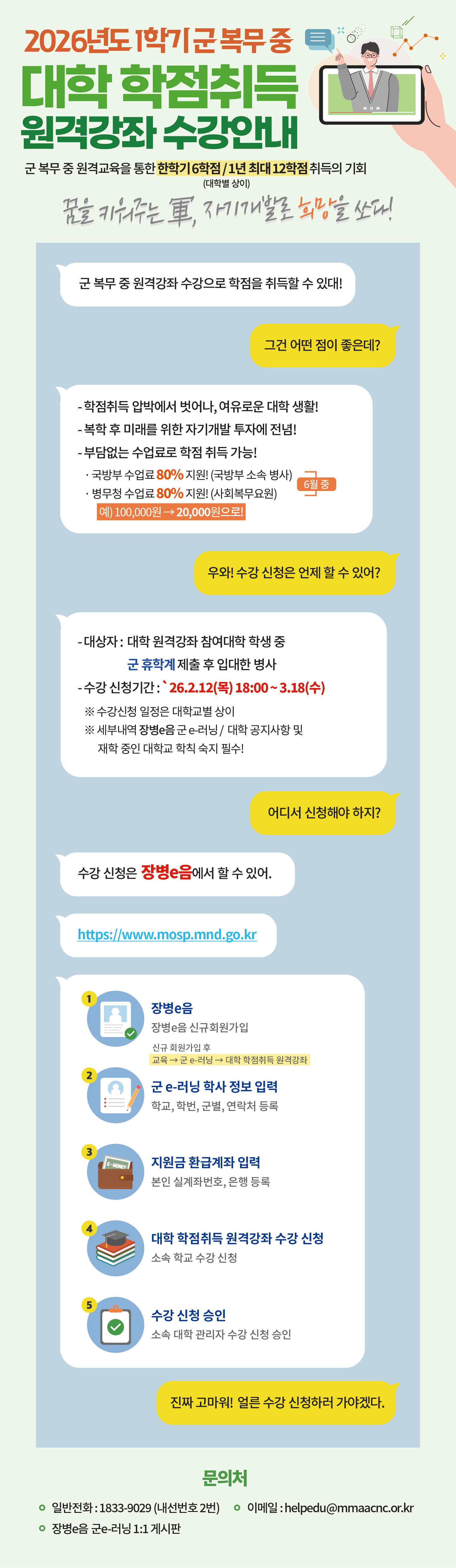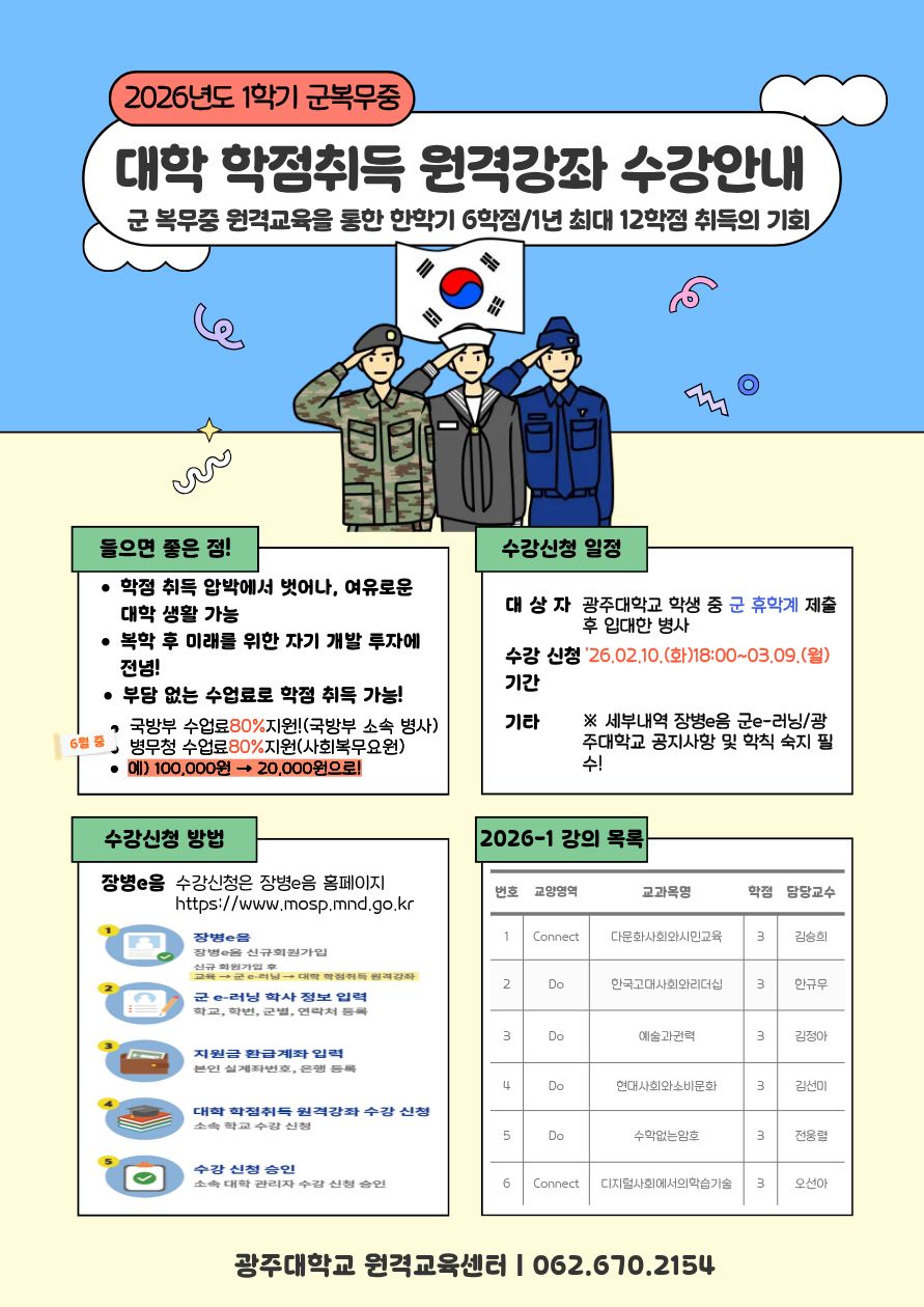 2026학년도 1학기 군 복무 중 대학 학점취득 원격강좌 수강 안내